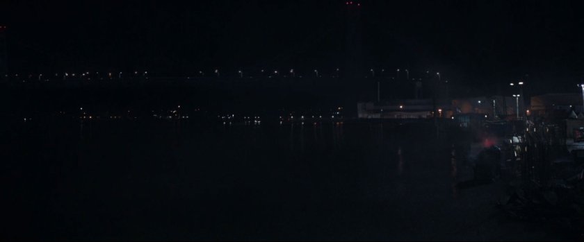 The actual crash of the car into the water was staged in England at the Northfleet Industrial Estate, according to Cinefex 150.