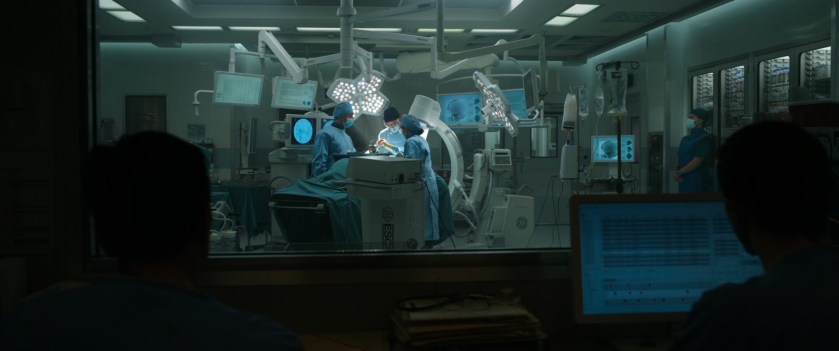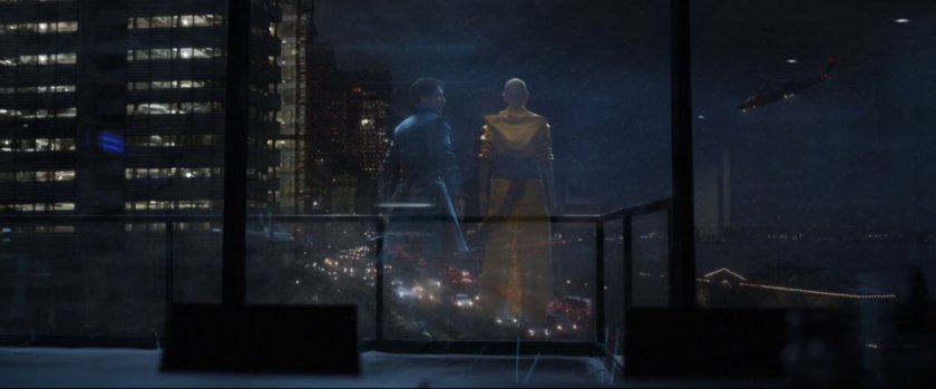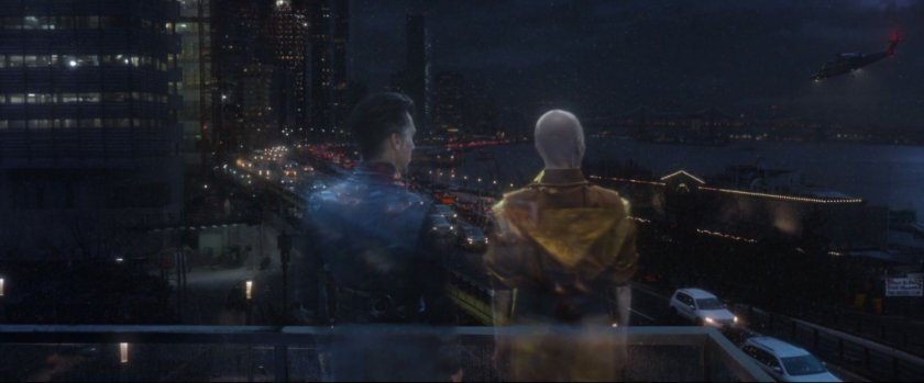 The astral forms of Dr Strange and the Ancient One talk on this balcony overlooking the FDR Drive. This background plate for this shot appears to have been gathered at the Alexandria Center for Life Sciences in New York.
