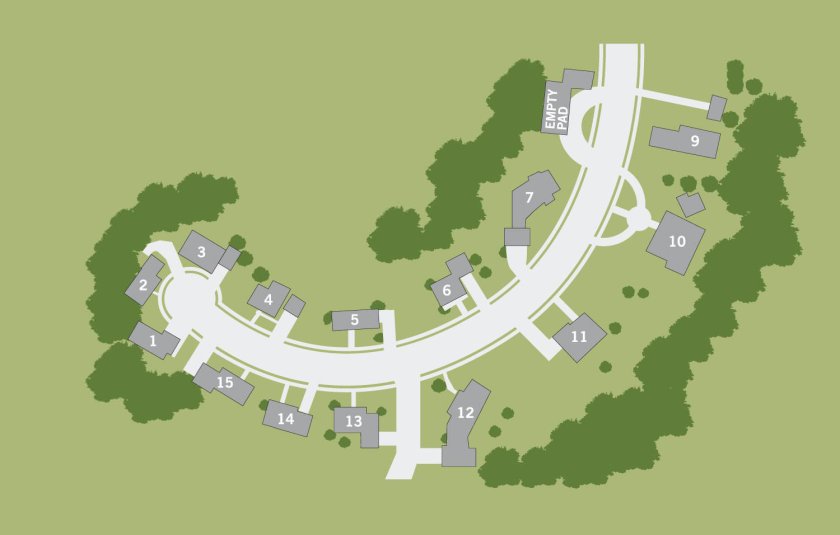 To capture the TV sitcom era of this 1990s world, the crew once again returned to the Golden Oak Ranch, this time using the Residential street location. The conversation in the street takes place between houses 5 and 14.