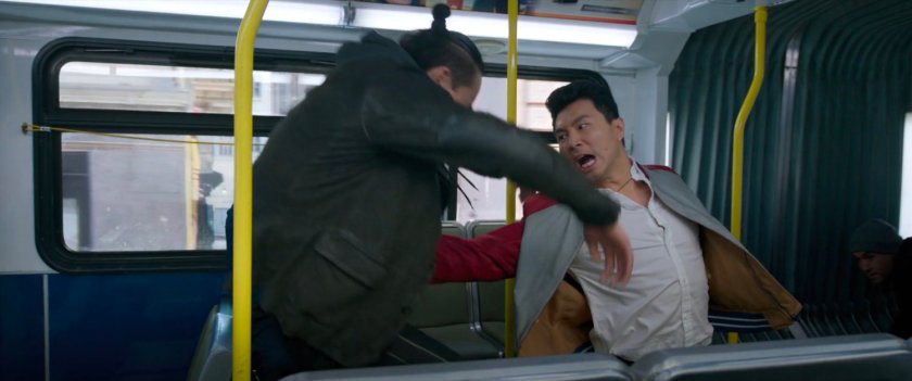 Shaun checks to make sure Katy is OK when two other thugs grab him attempting to get the pendant. The master of kung fu spins up and over thug 1, throwing him into a seat. The view outside the window is still 429 Bush St.