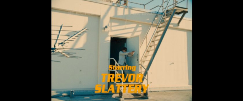 Trevor shows Jackson Norris footage from his television pilot called Caged Heat. There are two shots of his character on a rooftop, and one driving past a warehouse/loading dock with Russian text. These were also filmed at the Sybil Brand Institute, along with the interiors. The roof sections were filmed in the middle of the roof for the main prison, while the loading dock used the building’s loading dock at the Institute, just to the left of the main entrance.