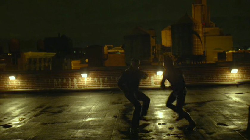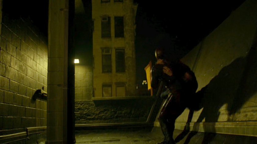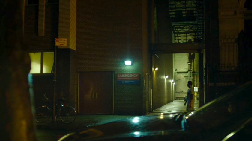 After the ninja attack at the hospital, Claire and Matt catch their breath in a supply room where she bandages herself after being thrown out a window. Claire warns Matt that he’s in over his head. At the end of the episode, Claire meets Foggy and the two walk out together.